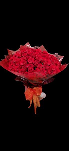 100 Luxury Red Roses, beautifully wrapped and delivered in water.